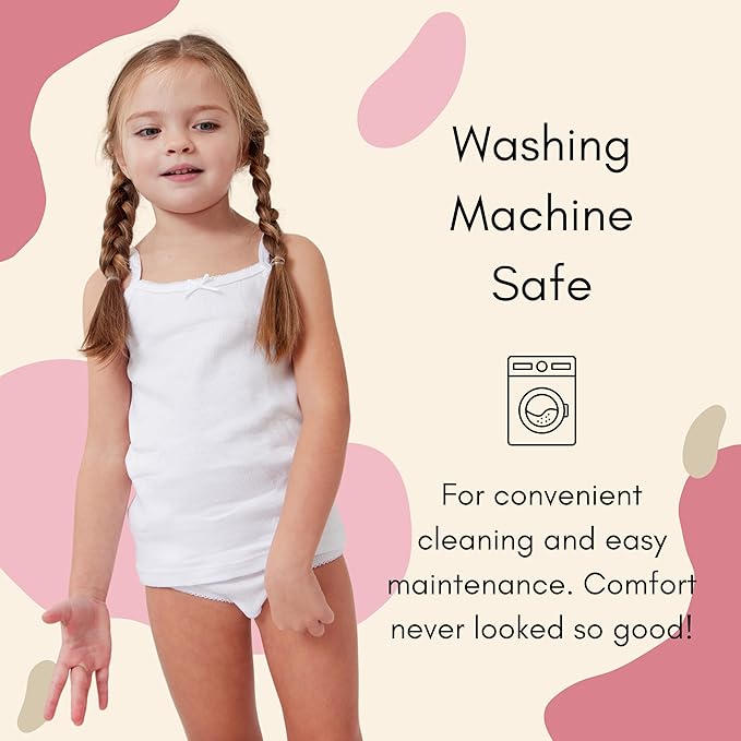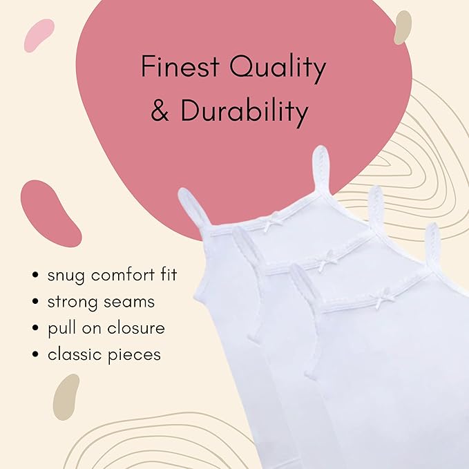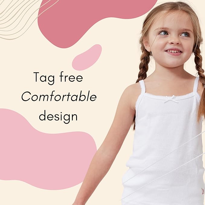 Feathers Girls Solid White Snug Fit Tagless Cami Vest - 100% Cotton Super Soft Undershirts (3/Pack)